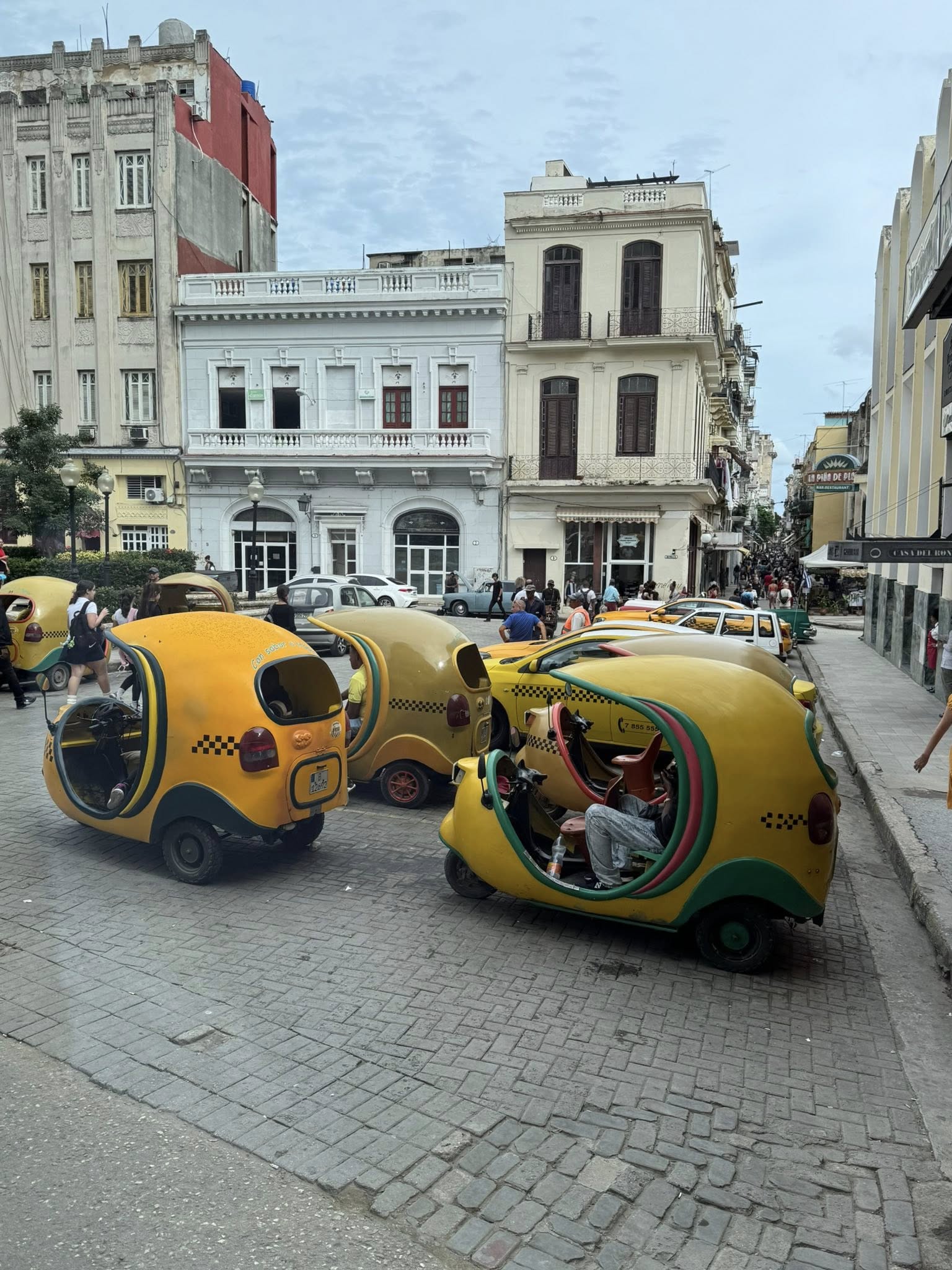 古巴像是沉睡許久的國度,特利里尼西班牙殖民五百年,未曾整修的建築外觀-鵝卵石道路,馬車為交通工具,也列入世界文化遺產。大多數的飯店、餐廳、商店甚至於遊覽車的司機導遊都是國營的,甚至於車子加油都要到指定的加油站,就算常停電,有買網卡網路也不太通,有名的Mojito 蘭姆酒、雪茄、咖啡都是嚴格管控的名產。