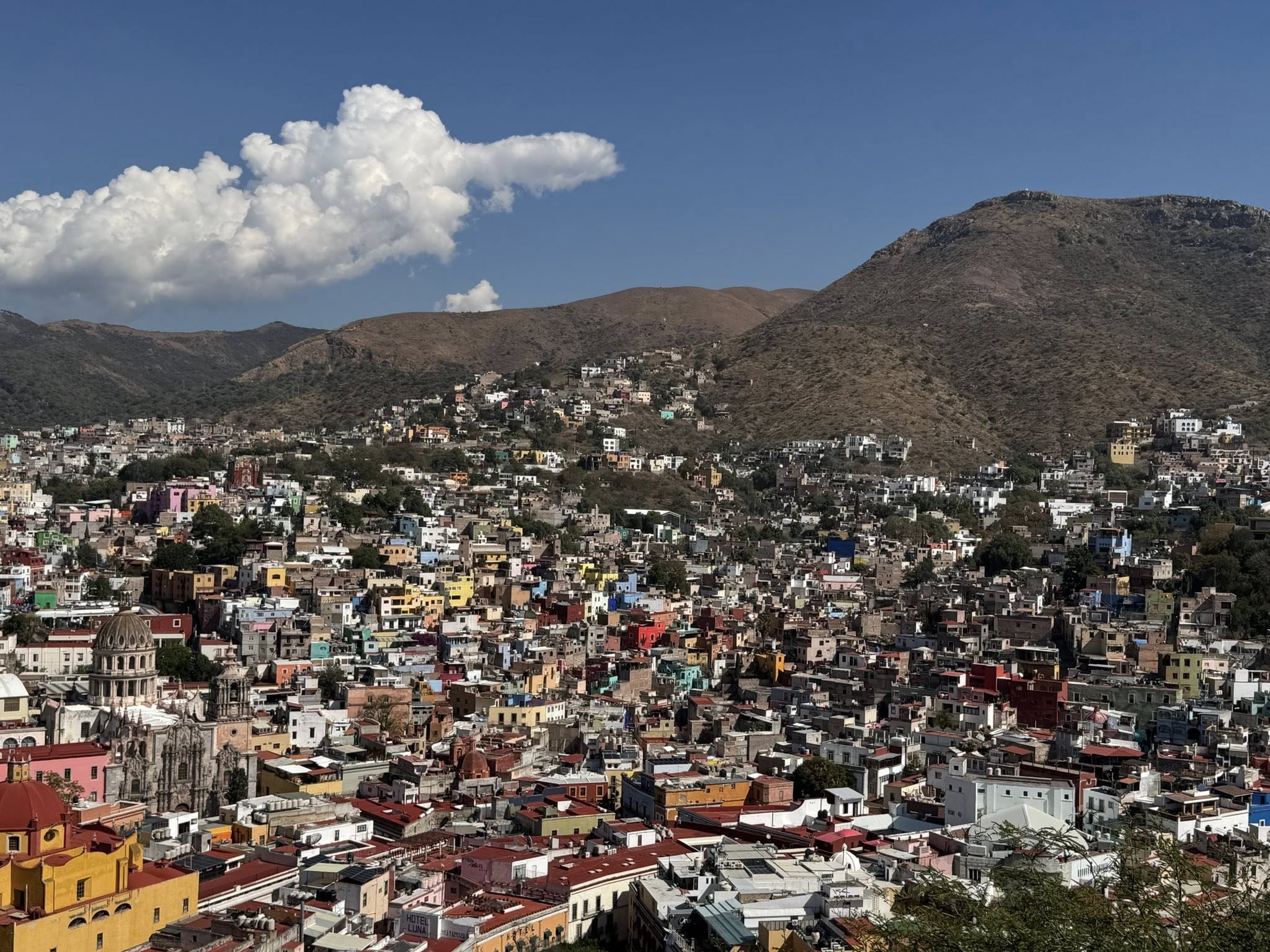 墨西哥瓜那華托,電影可可夜總會發想地,是這次墨西哥最喜歡的城市,由長長的地下隧道左拐右拐十字路口,進入像似走上奇幻冒險樂園,駛出洞口滿山腰五顏六色的房子,柳暗花明,加上晚上聖誕節前夕遊行、裝飾、跟著隊伍唱歌遊走。白天五彩繽紛色彩充滿活力滿滿,拉丁式的熱情自由奔放。
