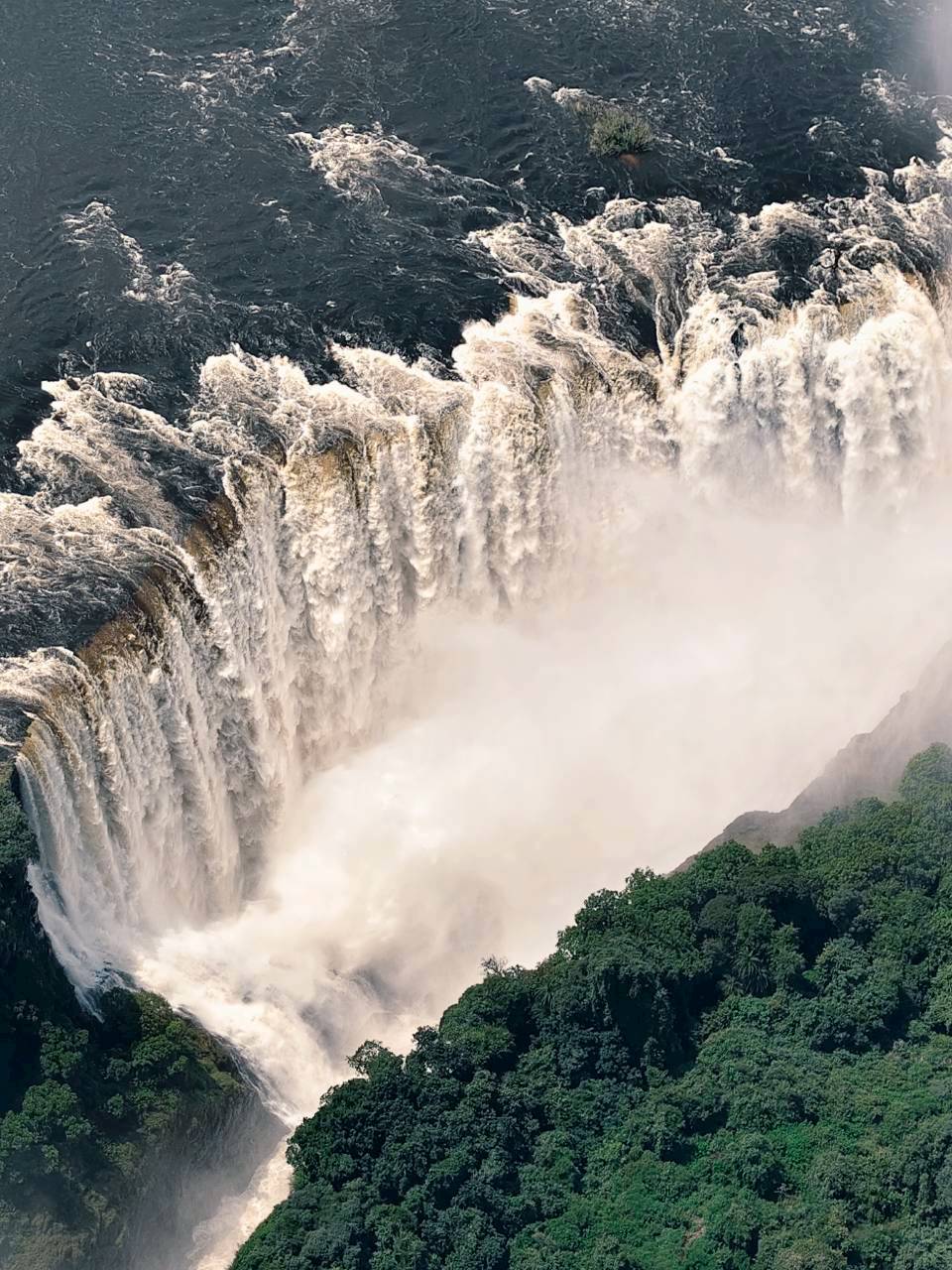 最興奮的莫過於搭乘直升機盤旋於辛巴威及尚比亞上空,以8字型盤旋親睹維多利亞瀑布上下游及分屬兩岸兩國之全景,能以三度空間欣賞奇蹟式的維多利亞瀑布,澎湃之心悸動依然。