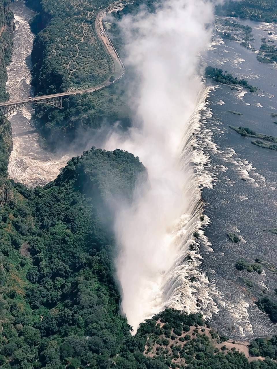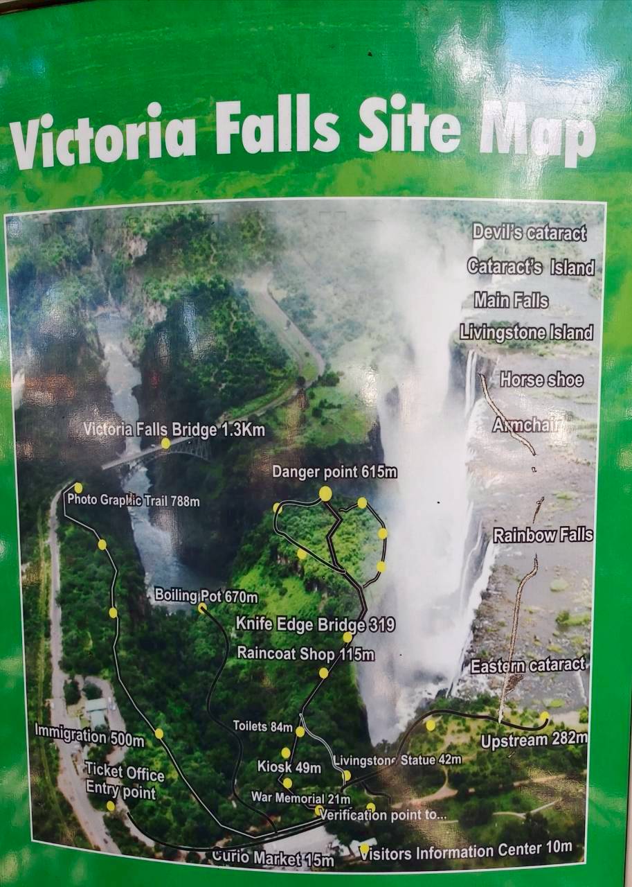 沿著尚比西河從辛巴威西進到波茲瓦納,又跨過新建國際大橋穿越北邊國界進入尚比亞。整個行程就是圍著維多利亞瀑布繞三角形,從尚比西河北端回到尚比亞的維多利亞瀑布北側。再度步行到瀑布上游遠眺著名的魔鬼池(現在水量太大不能下去游泳),再沿水道下行越過峭壁觀看瀑布,踏在被瀑布噴浸流水湍急的懸空鐵橋上,穿著雨衣仍全身濕浸於雷鳴雨霧之中,