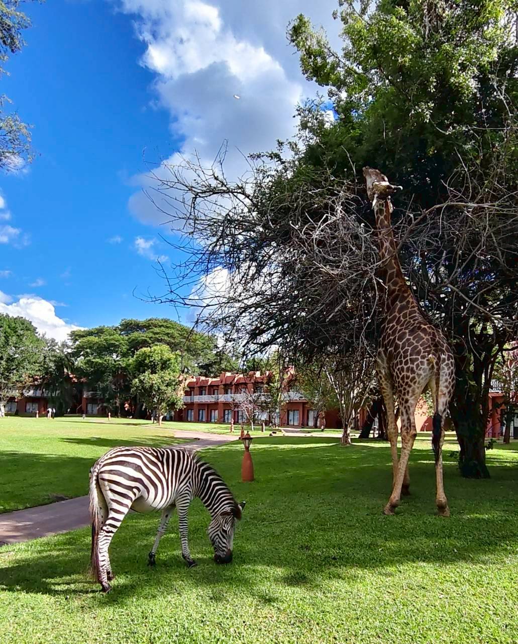 行程從香港轉機後直飛非洲衣索比亞轉辛巴威。一路驚喜連連,15年前登頂過的非洲第一高峰「吉利馬札羅山」驚鴻一瞥,興奮之情整路未能停歇。抵辛巴威機場迎接我們的有花豹、犀牛、土著舞…直奔維多利亞瀑布區沉浸在UNESCO的喜悅,著雨衣走在辛巴威側瀑布步道觀賞這世界三大瀑布之一,豐沛雲雨飛瀑高度108公尺為世界之最,為這趟驚奇之旅揭開序幕。(註)